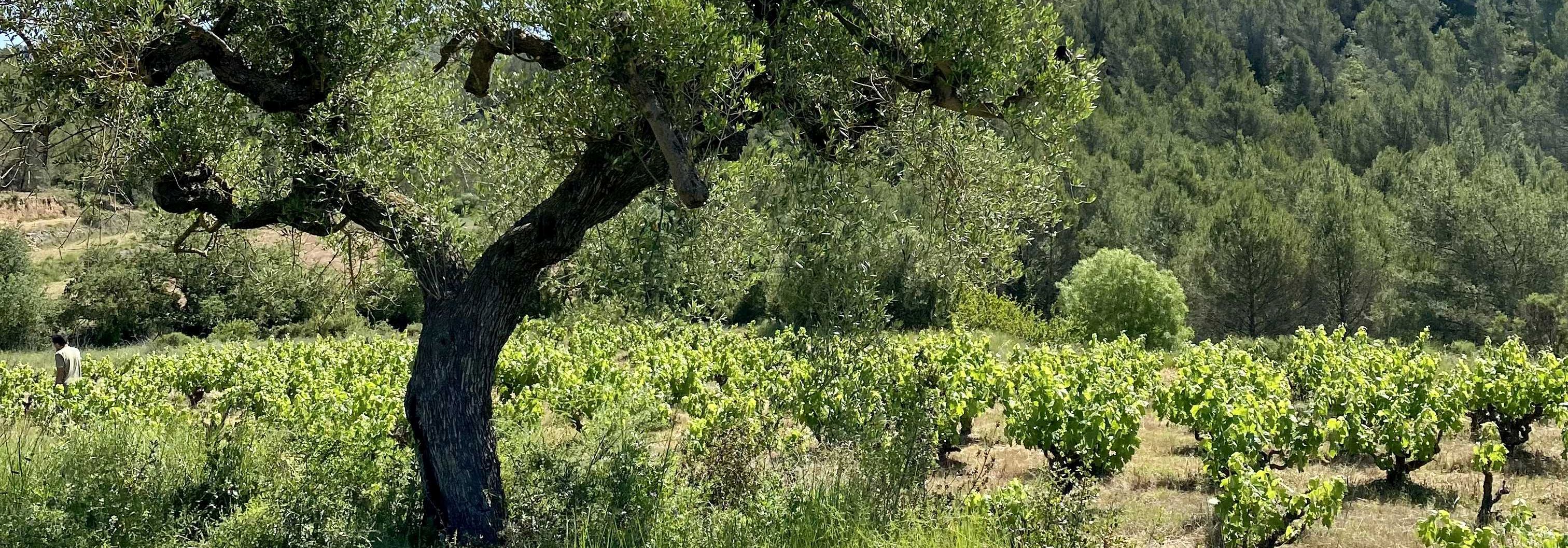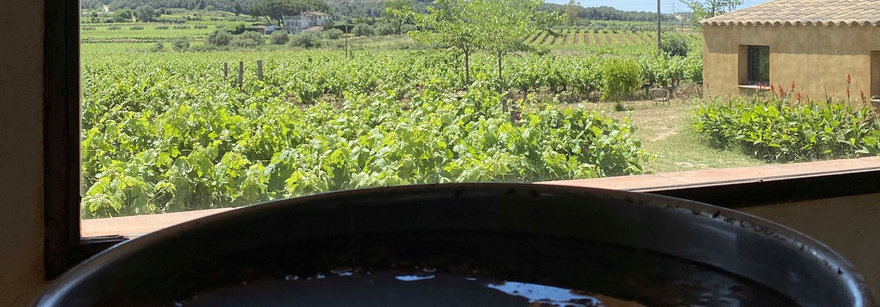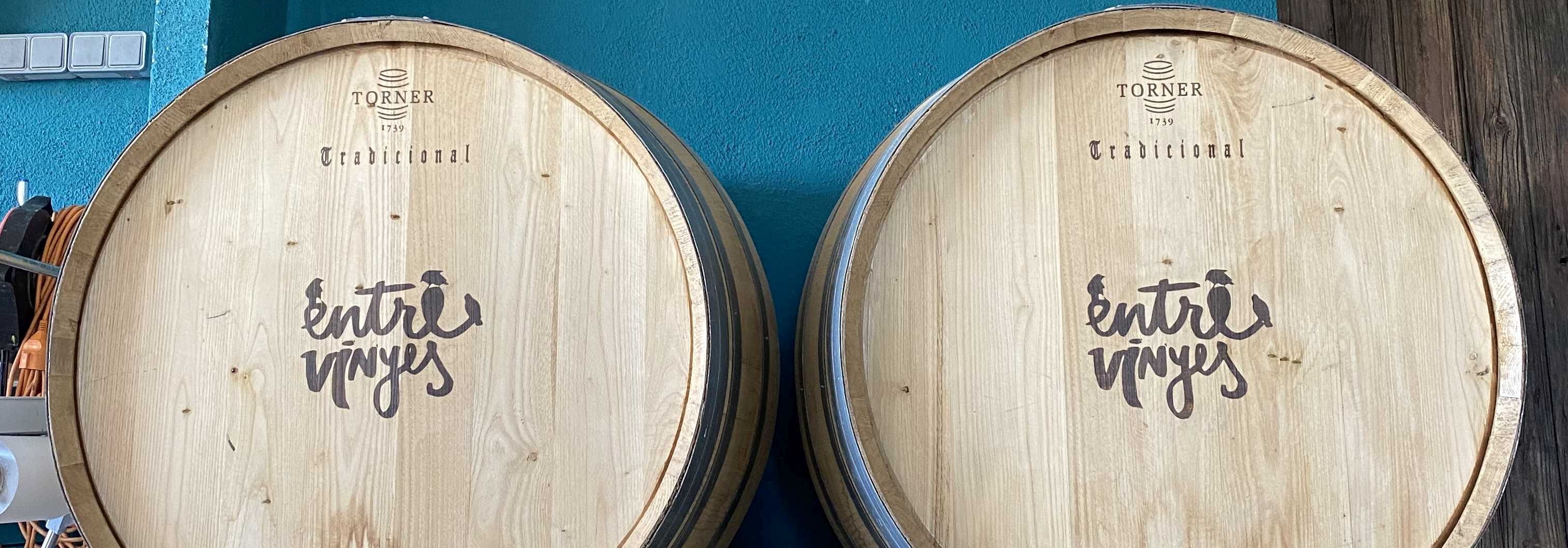 Das Weingut Entre Vinyes liegt in Arboc, einem kleinen Dorf einige Kilometer südlich von Vilafranca del Penedès im sogenannten Baix Penedès (dem flacheren Teil dieser Region). Hier bewirtschaften María Barrena und Pep Tort Montserrat die alten Weinberge von Peps Eltern. Nachdem sich die Struktur in Navarra mit den Bodegas Azul y Garanza auf der Beziehungsebene und auch hinsichtlich des Workflow stabilisiert hatte, wagte sich María mit ihrem Partner Pep (Kurzform von Josep) an eine neue Herausforderung, parallel zu ihrer Arbeit mit Azul y Garanza. Pep arbeitete berufsfremd, aber mit voller Überzeugung neben seinem Job als Sozialarbeiter an dem gemeinsamen Projekt. So dauerte es fast 10 Jahre, bis nicht nur einige Hektar Weinberge biologisch zertifiziert waren, sondern auch ein kleiner Weinkeller Schritt für Schritt aufgebaut war und ihre beiden Kinder aus dem Kleinkindalter herausgewachsen waren. Der alte Schweinestall wurde in ein einfaches Wohnhaus und der alte Hühnerstall in einen Weinkeller umgebaut. Diese beiden Gebäude stehen nah beieinander - Entre Vinyes - mitten zwischen den Weinstöcken.