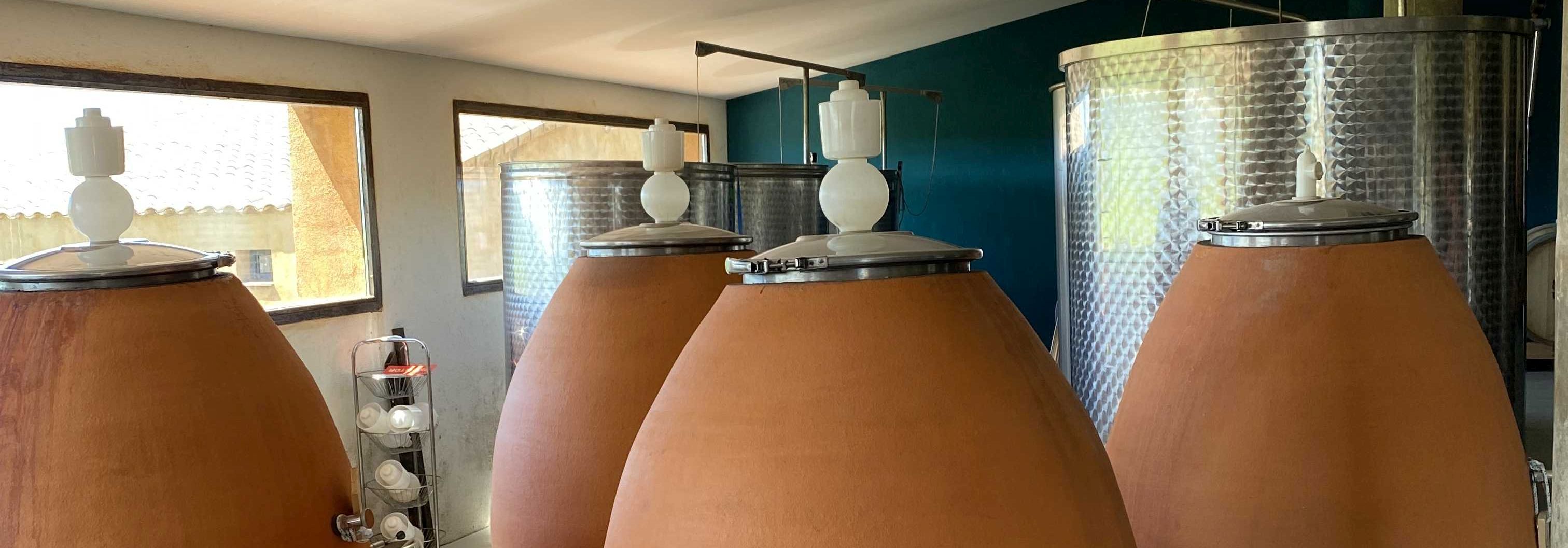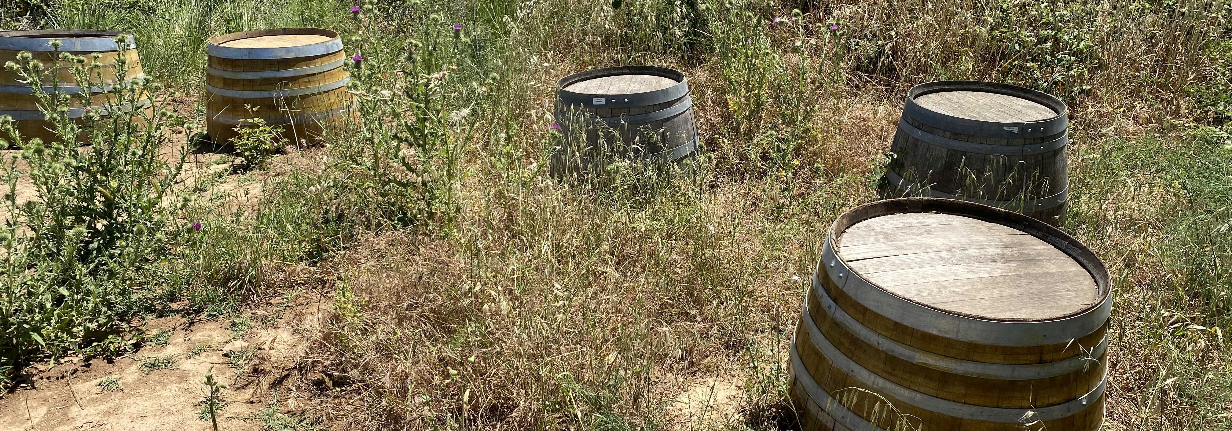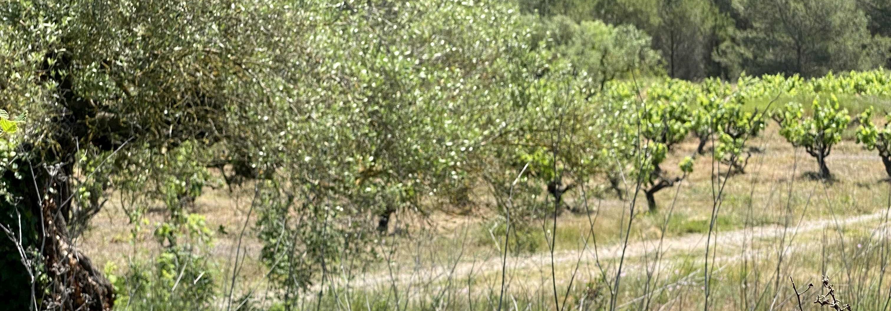 Das Weingut Entre Vinyes liegt in Arboc, einem kleinen Dorf einige Kilometer südlich von Vilafranca del Penedès im sogenannten Baix Penedès (dem flacheren Teil dieser Region). Hier bewirtschaften María Barrena und Pep Tort Montserrat die alten Weinberge von Peps Eltern. Nachdem sich die Struktur in Navarra mit den Bodegas Azul y Garanza auf der Beziehungsebene und auch hinsichtlich des Workflow stabilisiert hatte, wagte sich María mit ihrem Partner Pep (Kurzform von Josep) an eine neue Herausforderung, parallel zu ihrer Arbeit mit Azul y Garanza. Pep arbeitete berufsfremd, aber mit voller Überzeugung neben seinem Job als Sozialarbeiter an dem gemeinsamen Projekt. So dauerte es fast 10 Jahre, bis nicht nur einige Hektar Weinberge biologisch zertifiziert waren, sondern auch ein kleiner Weinkeller Schritt für Schritt aufgebaut war und ihre beiden Kinder aus dem Kleinkindalter herausgewachsen waren. Der alte Schweinestall wurde in ein einfaches Wohnhaus und der alte Hühnerstall in einen Weinkeller umgebaut. Diese beiden Gebäude stehen nah beieinander - Entre Vinyes - mitten zwischen den Weinstöcken.