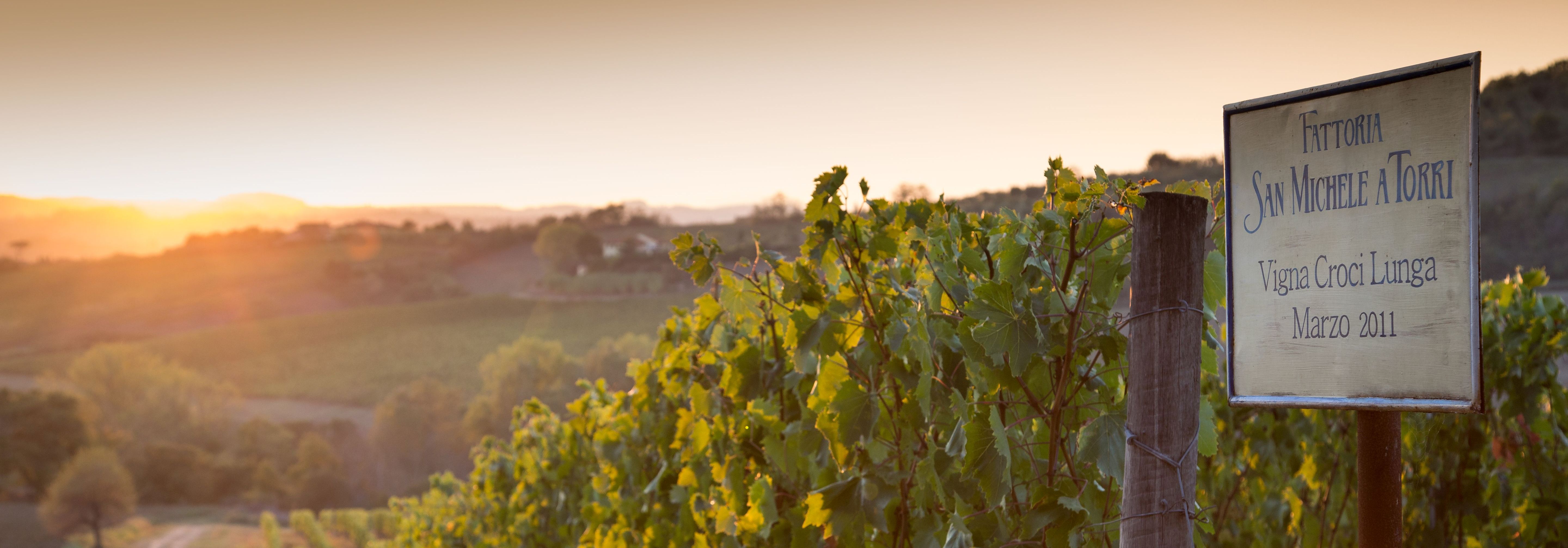 Sicherlich wollte Paolo Nocentini seinen Traum vom Alterssitz in den Bergen unmittelbar südlich von Florenz verwirklichen, als er das alte Gut ‚San Michele a Torri‘ kaufte. Die Geschichte der Fattoria mit einer Gesamtfläche von mehr als 200 ha geht mehrere Jahrhunderte zurück. Ursprünglich gab es quasi eine eigene Dorfstruktur innerhalb des Gutes. Davon zeugt noch heute eine eigene Kapelle in den Kellern mit Grabkammern im Gemäuer. Auch heute ist der Landbesitz von ‚San Michele a Torri‘ zu groß, um ihn nebenbei bewirtschaften und verwalten zu können. So zieht sich Signore Nocentini immer mehr aus dem Speditionsgewerbe, seinem eigentlichen Beruf, zurück. Doch statt in Pension zu gehen, sieht er sich vor eine neue Lebensaufgabe gestellt, die er sehr ernst nimmt und in deren Rahmen er nicht davor zurückschreckt, sich neuen Ideen zu öffnen. Ein großes und zudem nicht ganz risikoloses Projekt war es sicherlich, die gesamte Rebfläche auf ökologische Bewirtschaftung umzustellen. Der vollendete Aufbau der konsequent autarken Energiegewinnung war in 2012 sicher eine logische, angesichts der Größe des Gutes aber auch eine mutige Konsequenz. Die Rebflächen befinden sich vornehmlich im Bereich des Chianti Classico, doch auch die Chianti Colli Fiorentini können mit eleganter, fruchtiger Substanz und weichen Tanninen überzeugen. Für die Arbeit in und am Wein zeigt sich seit vielen Jahren der sympathische und kompetente Leonardo Francalanci verantwortlich. Abseits des Weines wird Hartweizen für die typische italienische Pasta ökologisch angebaut. Zudem gibt es ein eigenes kleines Wildschweingehege. Man kann zwar nicht behaupten, hier würden „prosciutto crudo“ und „salame“ angebaut, aber sie sind trotzdem köstlich.